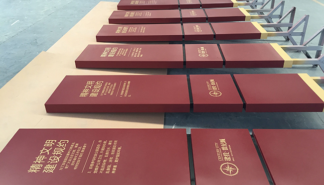 2016年4月26日,歡迎中海地產(chǎn)各位領(lǐng)導來我公司考察,我公司總經(jīng)理胡總代表公司全體員工對諸位客人的到來表示熱烈的歡迎。接著胡總就標識標牌里涉及到的材料、工藝及標識文化給客戶做了詳細的介紹,為了讓客戶更加形象的了解...
